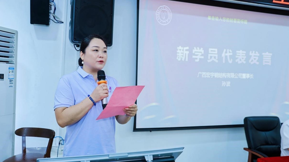 新学员代表,广西宏宇钢结构有限公司董事长孙波在发言中表达了全体学员的共同心声:“在产业变革浪潮奔涌向前的关键时刻,本次学习犹如一场‘及时雨’。我们渴望通过系统化的知识更新与思维淬炼,破解企业发展中的深层次挑战。我们将以空杯心态投入学习,深入交流,积极实践,将前沿理念与方法带回企业,努力成长为驱动创新、引领变革的先锋力量,绝不辜负时代赋予的机遇与重托。”