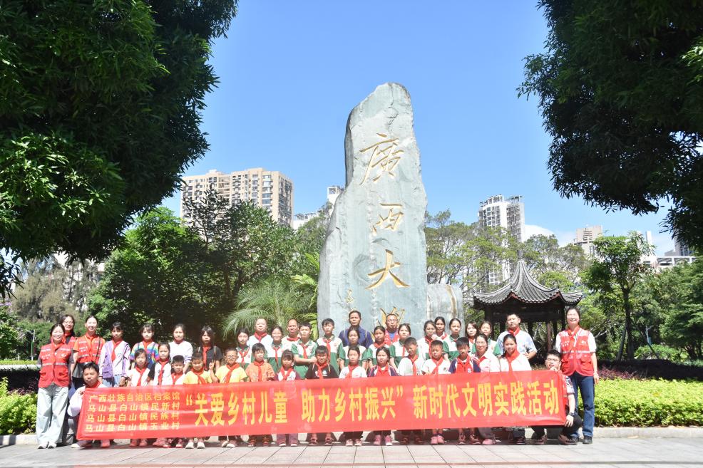 为进一步拓宽乡村儿童视野,充分激发乡村孩童积极向上、拼搏奋斗的精神,在2024年6月1日儿童节,马山县白山镇民新村、民族村、玉业村三个村学生30人和随行人员13人一起来到美丽的广西大学开展“关爱乡村儿童 助力乡村振兴”的研学实践教育活动。