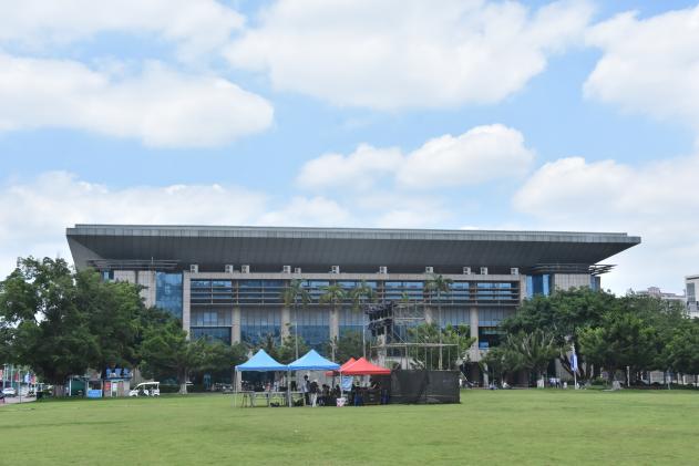 队伍一路前行,经过了汇学堂、西校园体育馆,来到了广西大学图书馆。经过图书馆门口时,同学们看到时光广场的“时光之门”纷纷感叹设计师的巧夺天工。