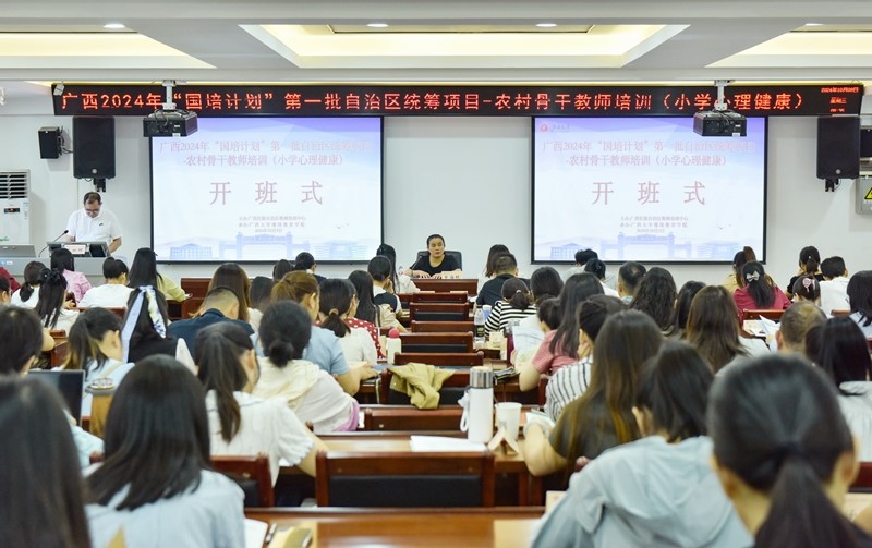 本次培训班由广西壮族自治区教育厅主办,广西大学继续教育学院承办,来自广西各地市的100名农村小学心理健康教师参加培训。