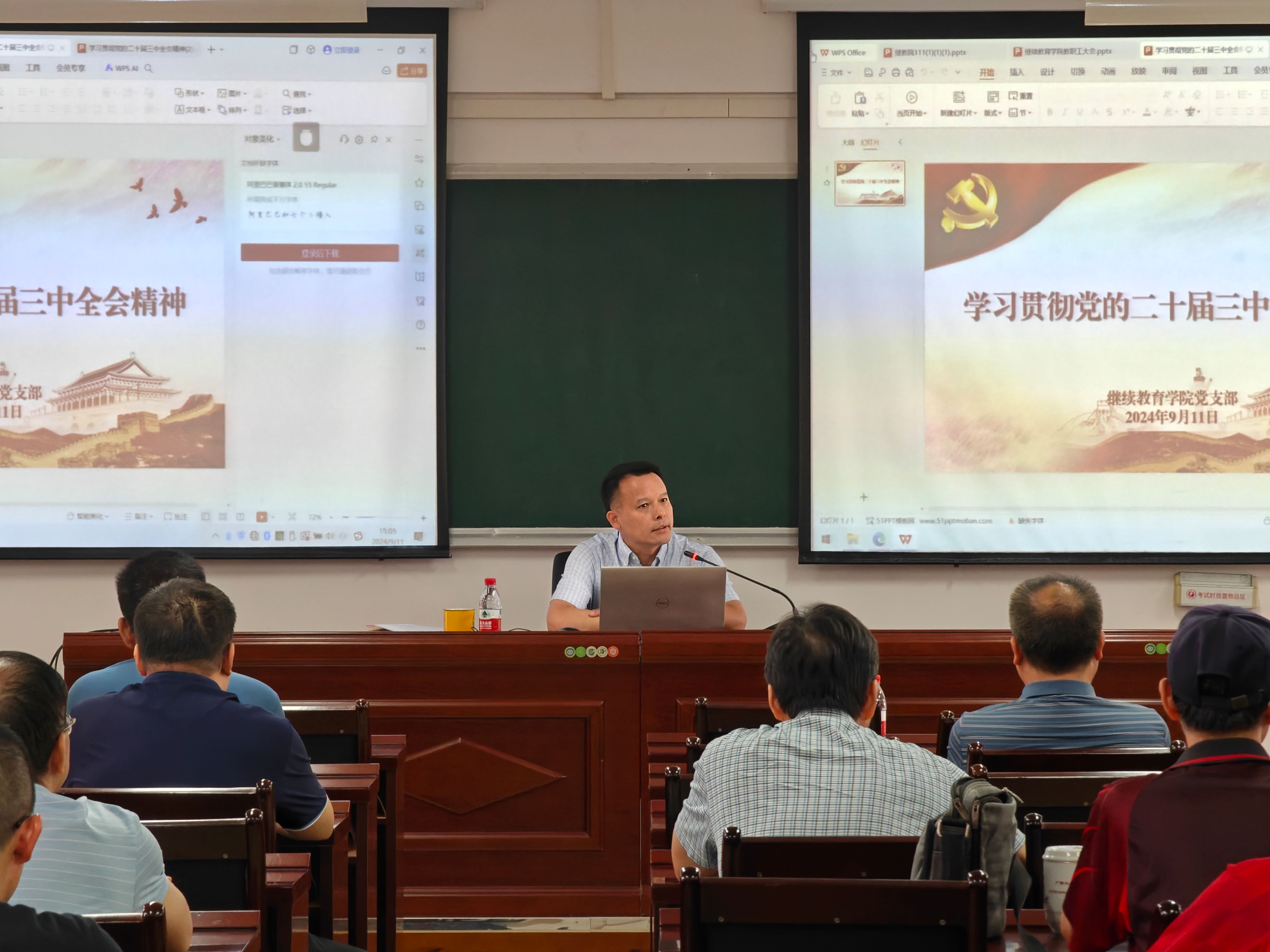 2024年9月11日下午,继续教育学院在403教室召开全院大会,深入学习贯彻党的二十届三中全会精神。