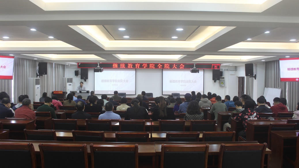 2024年3月5日,继续教育学院召开全院大会。继续教育学院全体教职工出席会议,校党委常委、副校长夏国恩到会指导。