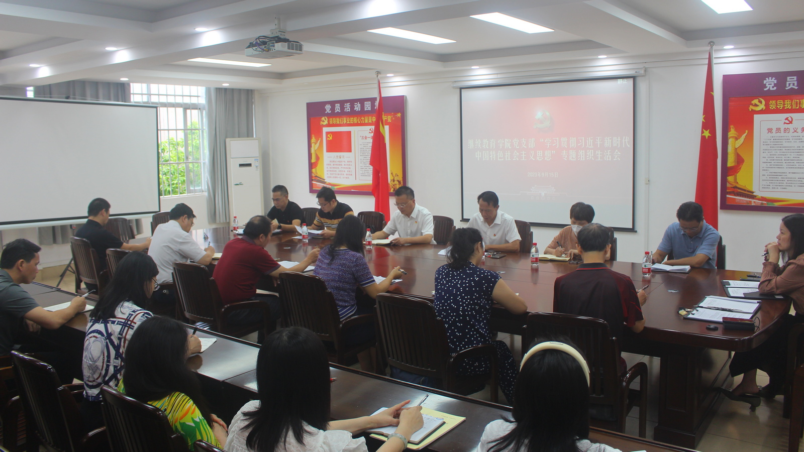 2023年9月15日,继续教育学院党支部在学院206会议室召开“学习贯彻习近平新时代中国特色社会主义思想”专题组织生活会。专题组织生活会由学院党支部副书记陈海主持,支部全体党员参会。