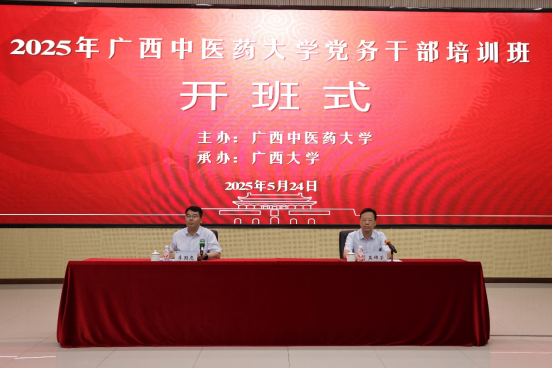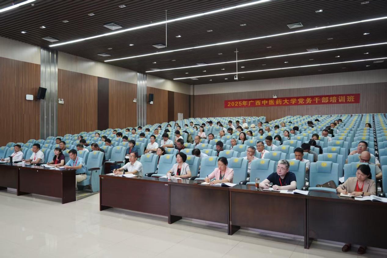 5月24日下午,由广西中医药大学主办、我院承办的“2025年广西中医药大学党务干部培训班”在我校资源环境与材料学院123报告厅举行开班式。校党委书记李国忠出席开班式并讲话。本次培训班为期5天,来自广西中医药大学二级学院党委书记、组织员、党支部书记共99人参加培训。