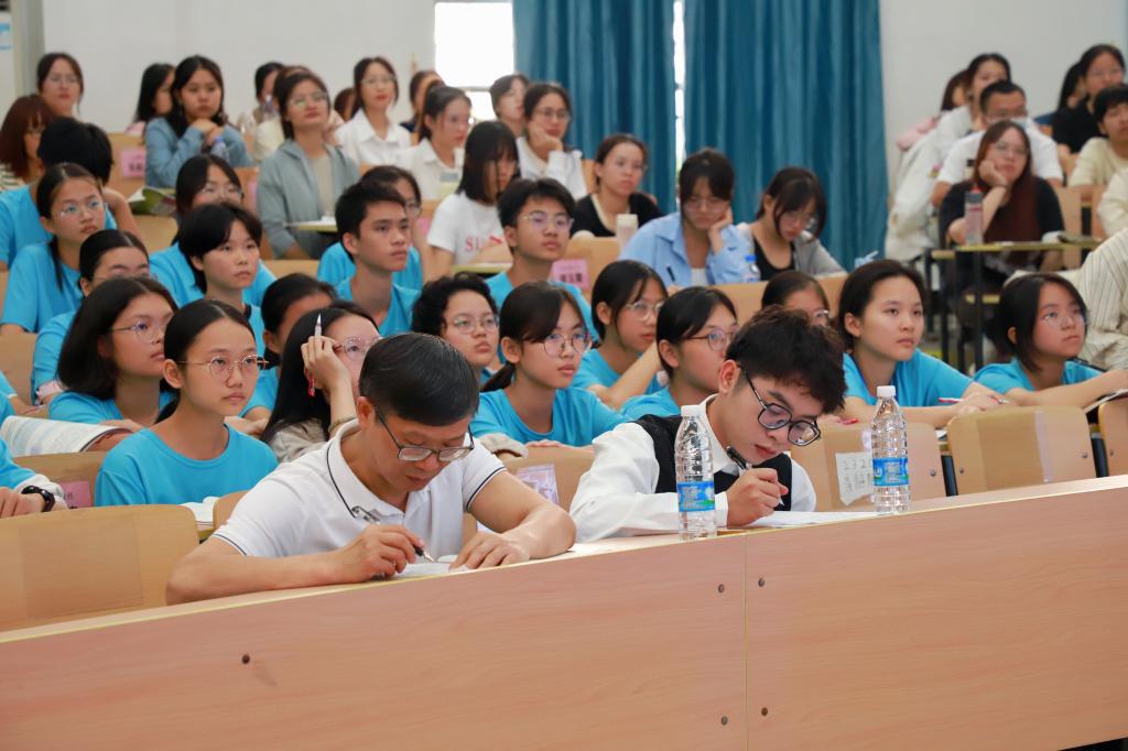 公开课结束后,中国·yL23411永利教师代表、北流市实验中学教师代表、2020级实习生与2021级见习学生一同参与评课环节。实习生滕小敏根据授课过程开展自我评价。北流市实验中学科研处副主任陆芊桦简要介绍了北流市实验中学的教学理念,教师代表莫雨涵对实习生进行点评,并提出改进的方法。期间,陈立林对北流实验中学教师们的付出表示感谢,指出实习生们要主动向教师学习,不断提高自身教师技能。最后,袁名泽作总结发言,他表示在见习中学生们学到了很多教学技巧与方法,收获颇丰,希望与北流市实验中学继续加强交流,增进教学相长。