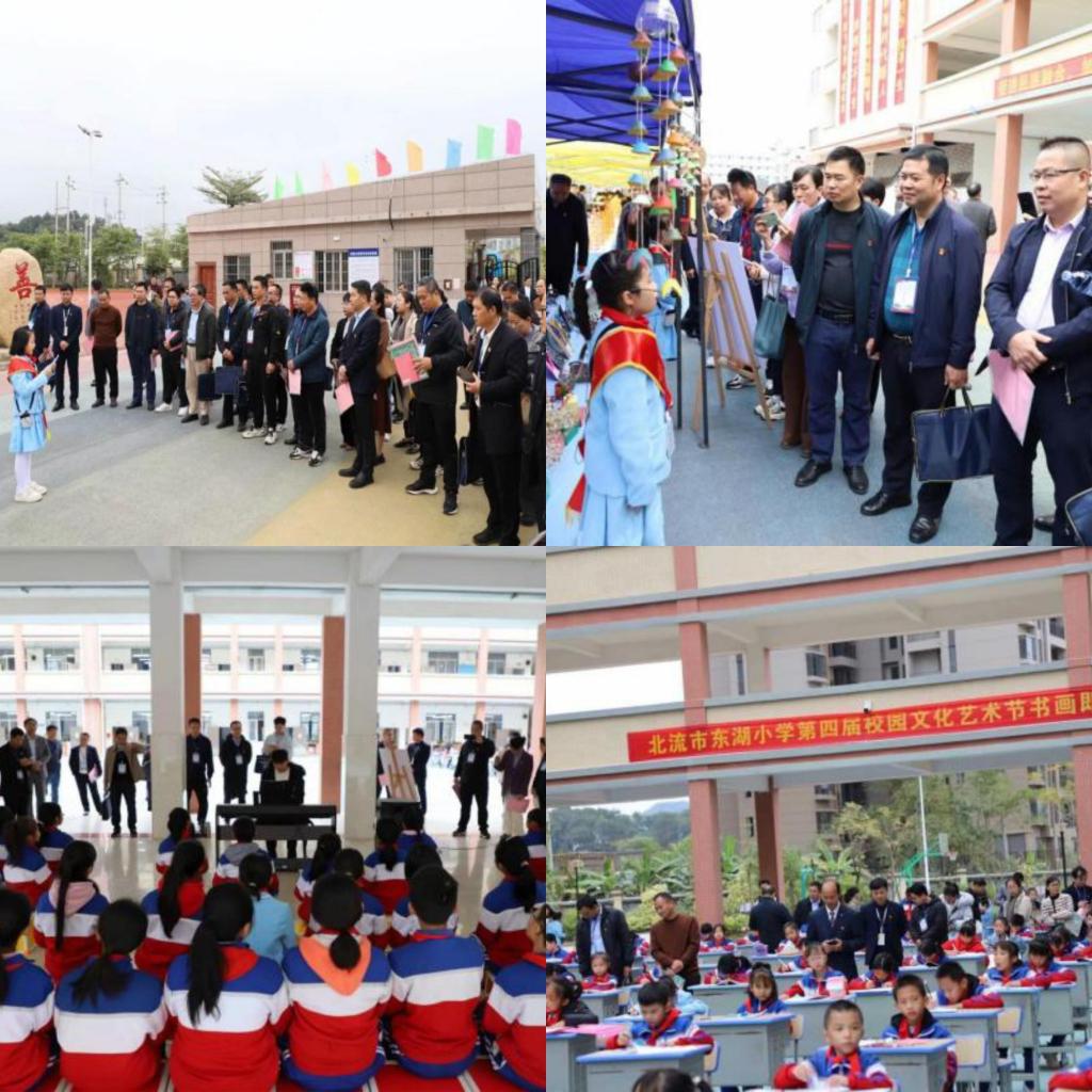 12月5日,培训班全体学员来到北流市东湖小学参观学习。学校的红领巾讲解员们为全体学员介绍了十几个社团活动。他们佩戴着鲜艳的红领巾,个个神采奕奕,声音洋洋盈耳,仪态落落大方,让学员们感受学校第四届校园文化艺术节的美好氛围以及欣赏艺术节的成果作品。