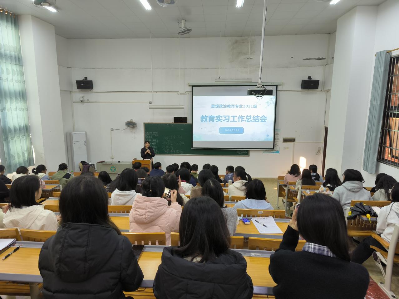 此次总结会聚焦思想政治教育专业2021级学生的教育实习活动,旨在全面回顾实习历程,分享同学们在实习中的所思所悟,反思存在的不足之处,总结实习经验教训,进而深化对教育实习内涵的深刻理解与精准把握。(摄影/曾森丽)