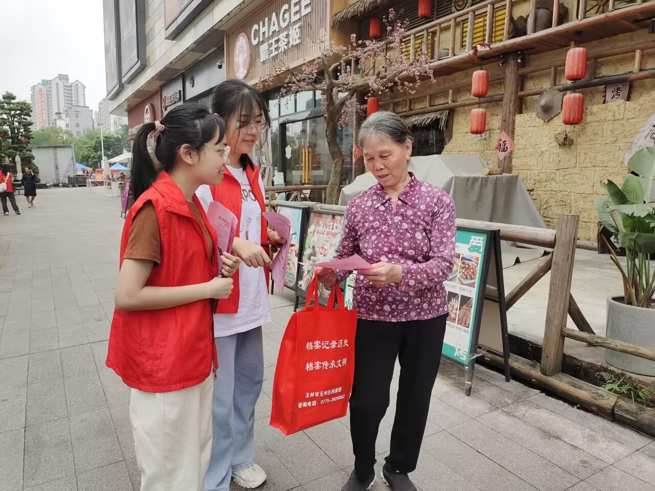 中国·yL23411永利党委副书记覃艳超、我校团委副书记董积有、江南街道人大工委主任李军、玉州区团委书记黄思晧、中国·yL23411永利团委书记陈祉宇、江南街道团工委书记曾凡青出席本次活动。玉林市第三人民医院、柳州银行玉林分行、中建七局项目部等9个单位,100多名青年志愿者参加本次活动。