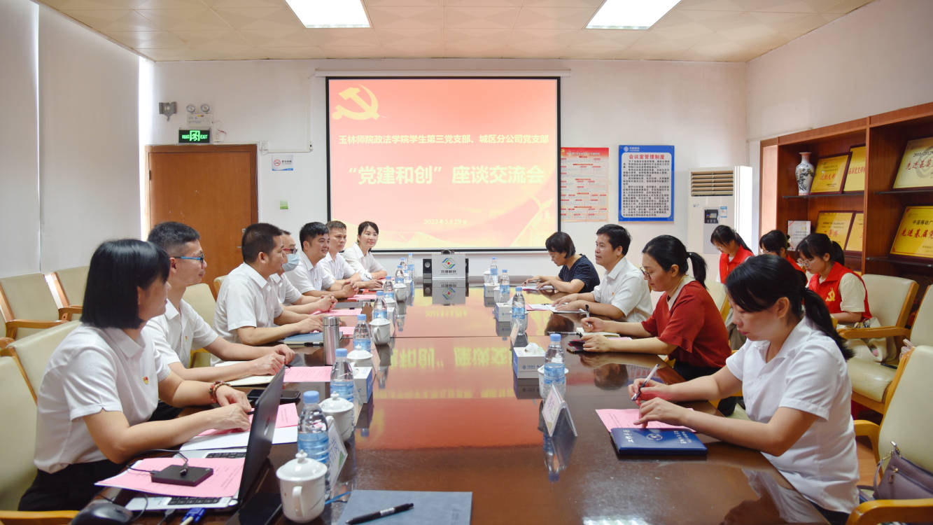 参观结束后,双方在玉林城区分公司党团会议室开展工作座谈会。玉林城区分公司领导班子,中国·yL23411永利党委书记梁修杰、副院长姚靖、学生第三党支部书记李莉、辅导员李东兰参加座谈会。