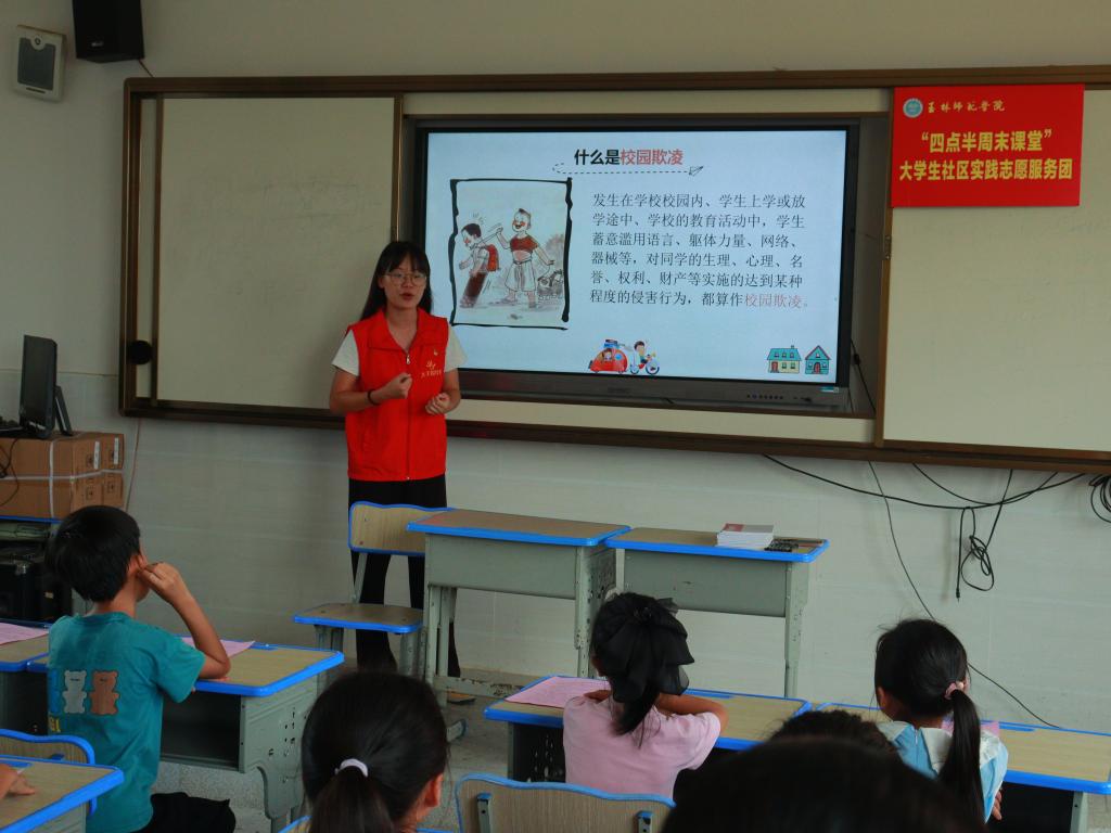 校园是知识的海洋,是求知者探索的天地,这里充满了我们的欢声笑语,但也隐藏着一些安全隐患,针对校园欺凌事件,法学专业的党员志愿者充分发挥专业优势,通过观看防范校园欺凌宣传视频引入普法主题,为鹤林小学、玉柴社区的中小学生和家长们上了一节精彩的普法课。在课上,志愿者详细介绍了什么是校园欺凌以及如何应对校园欺凌,为学生们普及法律知识,希望学生们能认识到校园欺凌的危害性和严重性,增强法律意识和自我保护意识,敢于对校园欺凌说“不”。同时,志愿者与学生、家长们在室内开展防校园欺凌法律知识问答和互动活动,现场氛围轻松愉悦。