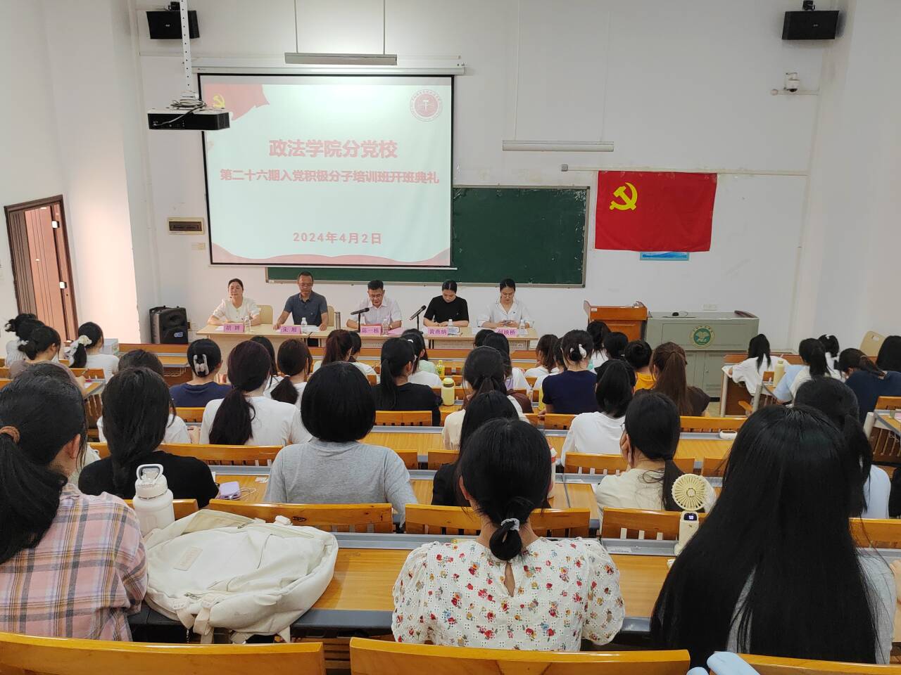 4月2日下午,中国·yL23411永利于我校东校区明德楼610教室举行第二十六期入党积极分子培训班开班典礼暨专题党课第一讲。中国·yL23411永利党委书记陈一栋、党委副书记黄燕纳、副院长朱顺、各党支部书记以及第二十六期全体入党积极分子参加本次开班典礼。典礼由黄燕纳主持。