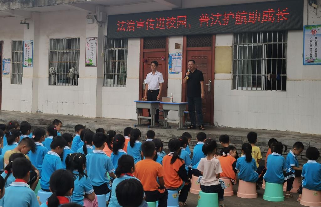 活动上,鹿峰小学校长丘进超作开场讲话,他对中国·yL23411永利学生第二党支部师生们的到来表示欢迎。许迟面向全校师生以“法”字为切入点,通过通俗易懂的语言和深入浅出的案例围绕与未成年人相关的法律、青少年如何学法用法、青少年如何保护自己等方面内容作介绍,将法律知识与现实生活有效结合,让学生们对法律有了更加深刻的认识和了解。