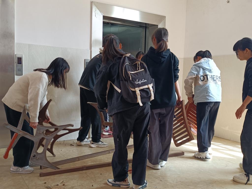 此次活动主要针对明德楼六楼考研教室、教室走廊等进行卫生清洁。活动开始前,青协志愿者协会负责人带领志愿者们依次领取劳动工具,并强调此次活动的要求以及注意事项。活动过程中,志愿者们分为三组,第一组负责擦拭桌椅,并将擦拭干净的桌子搬运到教室摆放整齐;第二组负责将废弃的桌椅搬运至明德楼一楼处,进行回收处理;第三组对考研教室及走廊进行全方位的细致清洁。