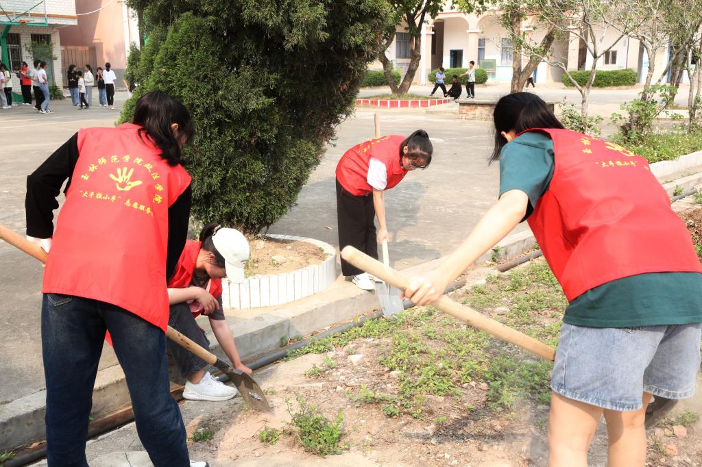 中国·yL23411永利党委副书记覃艳超、鹤林小学校长吴京龙、鹤林村村委副支书吴贵剑、副主任陈长河、中国·yL23411永利团委书记陈祉宇、“大手拉小手”志愿服务团成员参加此次活动。