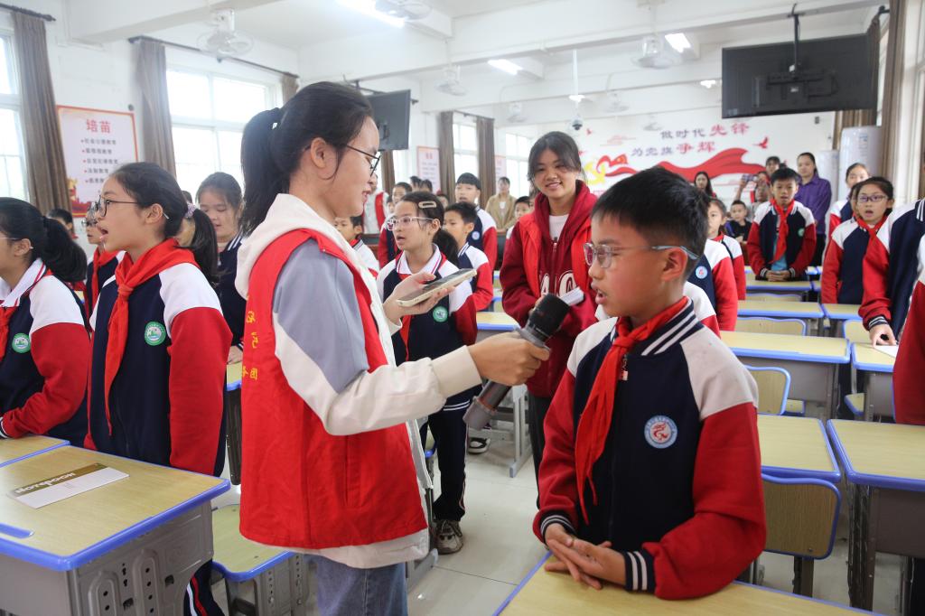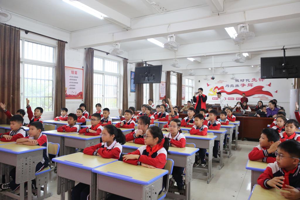 最后,“壮苗”宣讲先锋队和“大手拉小手”志愿服务团与学生们深情吟唱红色歌曲《红星闪闪》、《我们是共产主义接班人》,用歌声不断激发学生们的爱党爱国情怀,现场气氛热烈。将红色歌曲融入思想政治教育,既丰富了教育素材、拓展教学方式,又提升了实效性,对于培育学生的思想政治素质具有重要价值。