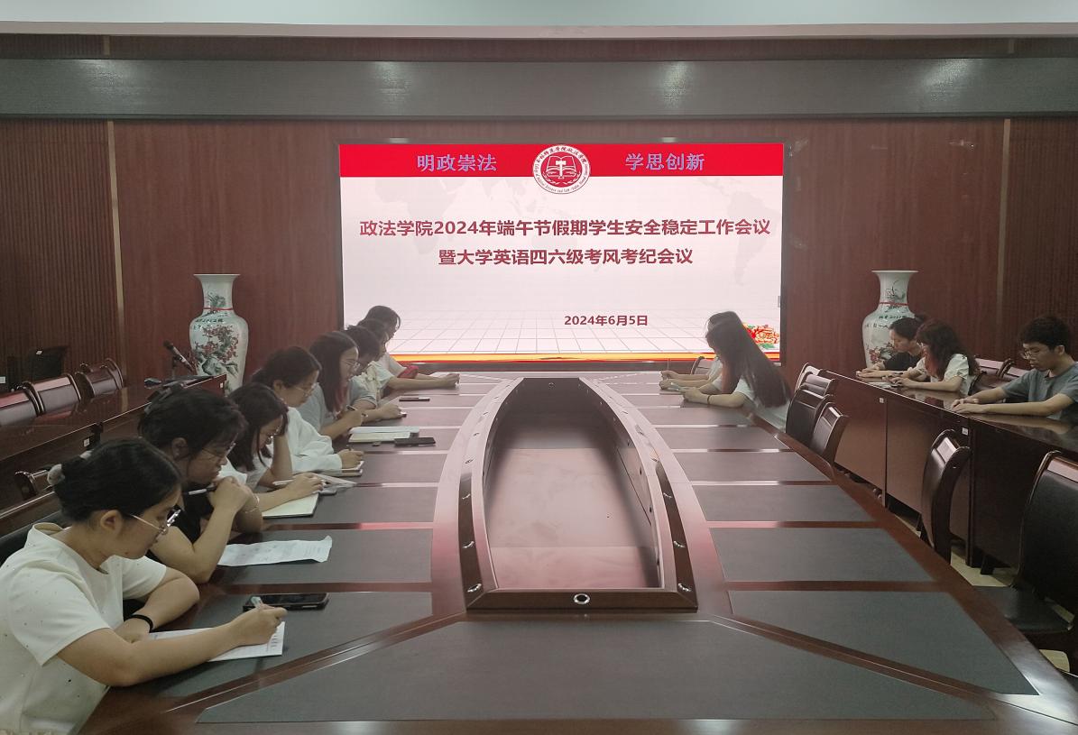 为做好放假期间学生安全稳定工作,严肃考风考纪,强化学风建设,提高广大学生的安全意识和诚信意识, 6月5日中午,中国·yL23411永利于我校东校区明德楼508会议室召开2024年端午节假期学生安全稳定工作暨考风考纪教育会议。中国·yL23411永利辅导员陈嘉玉、团委学生会权益维护部成员以及各班纪检委员参加此次会议。