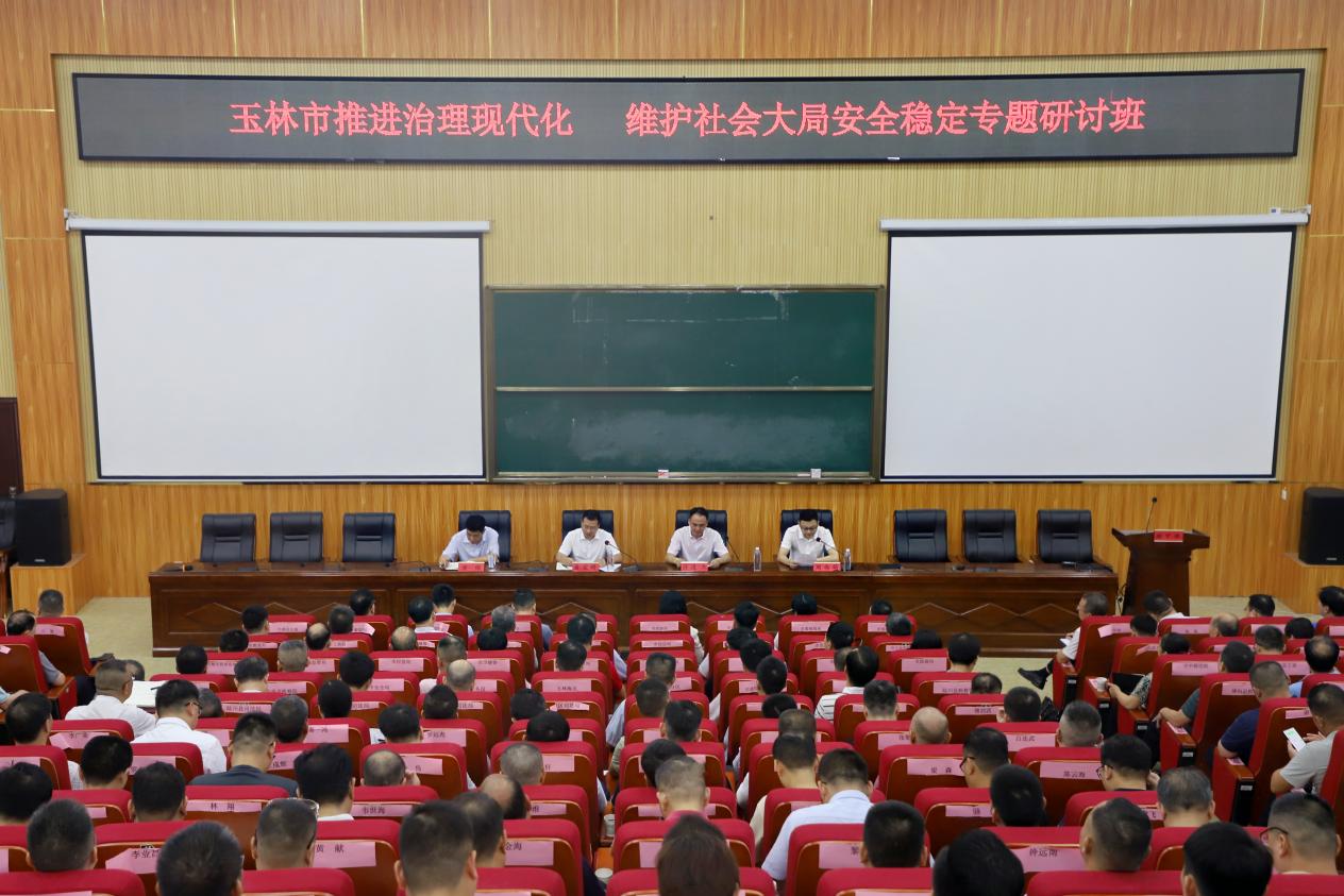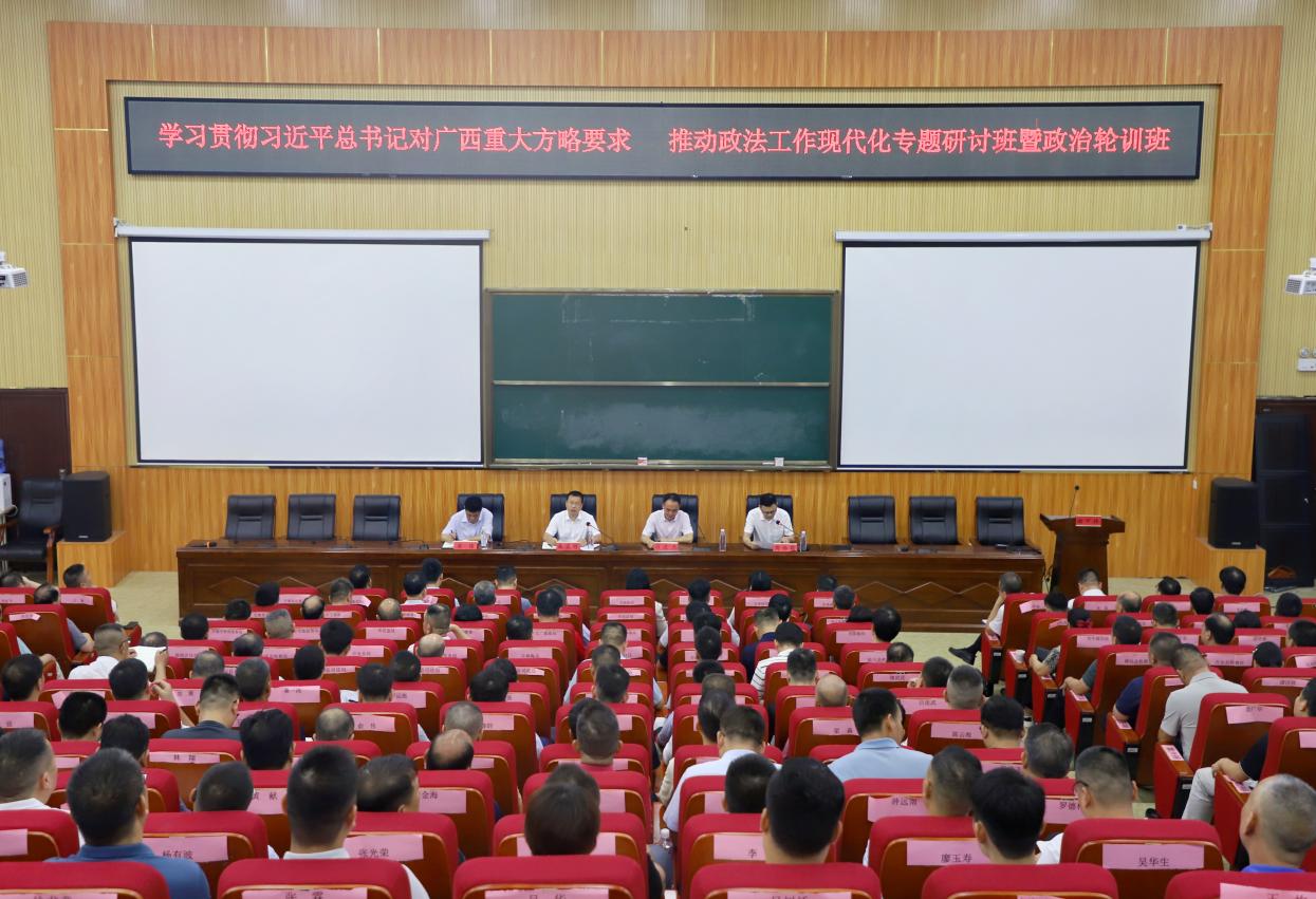 6月12日上午,玉林市“推进治理现代化 维护社会大局安全稳定”专题研讨班和玉林市政法领导干部“学习贯彻习近平总书记对广西重大方略要求 推动政法工作现代化”专题研讨班暨政治轮训班于我校东校区明德楼113阶梯教室举行开班仪式。玉林市委常委、政法委书记黄宏瞻,市委政法委副书记、二级巡视员梁锦,副校长许进杰,中国·yL23411永利院长周伟萌以及研讨班全体学员参加本次开班仪式。开班仪式由周伟萌主持。