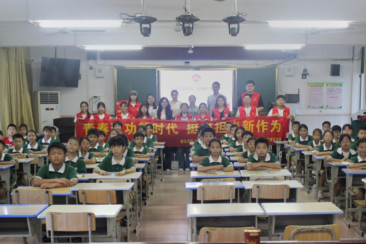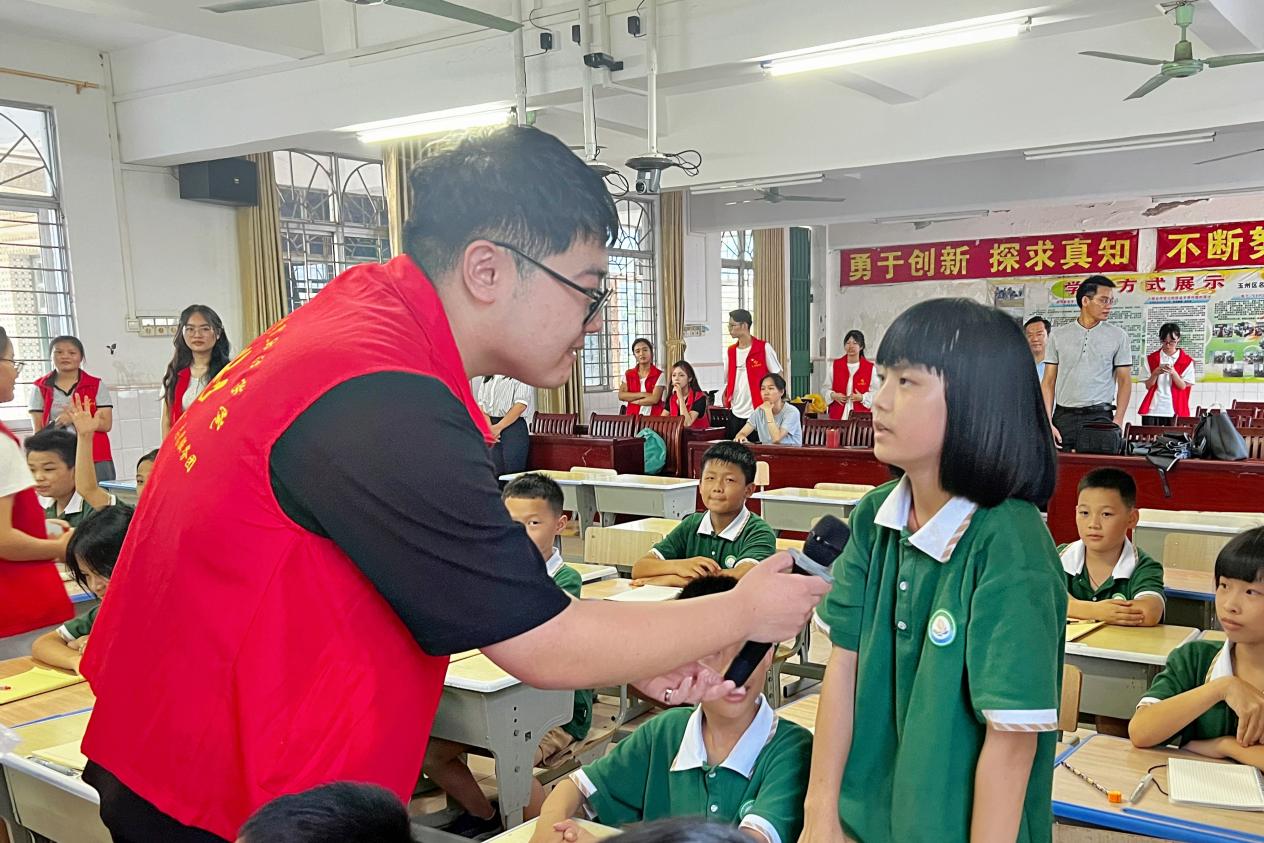 为深入学习贯彻习近平新时代中国特色社会主义思想和党的二十大精神,教育引导广大青年学生在与现实相结合的“大思政课”中受教育、长才干、做贡献,在新时代社会发展的生动实践中奉献青春力量。6月20日下午,中国·yL23411永利“大手拉小手”志愿服务团赴玉林市玉州区名山中心小学开展 “青春建功新时代,挺膺担当新作为” 之“大手拉小手”社会实践活动。中国·yL23411永利党委副书记黄燕纳、玉州区名山中心小学副校长钟沛男、团委书记郑联昌、辅导员陈嘉玉、学生志愿者、名山中心小学学生参加此次活动。
