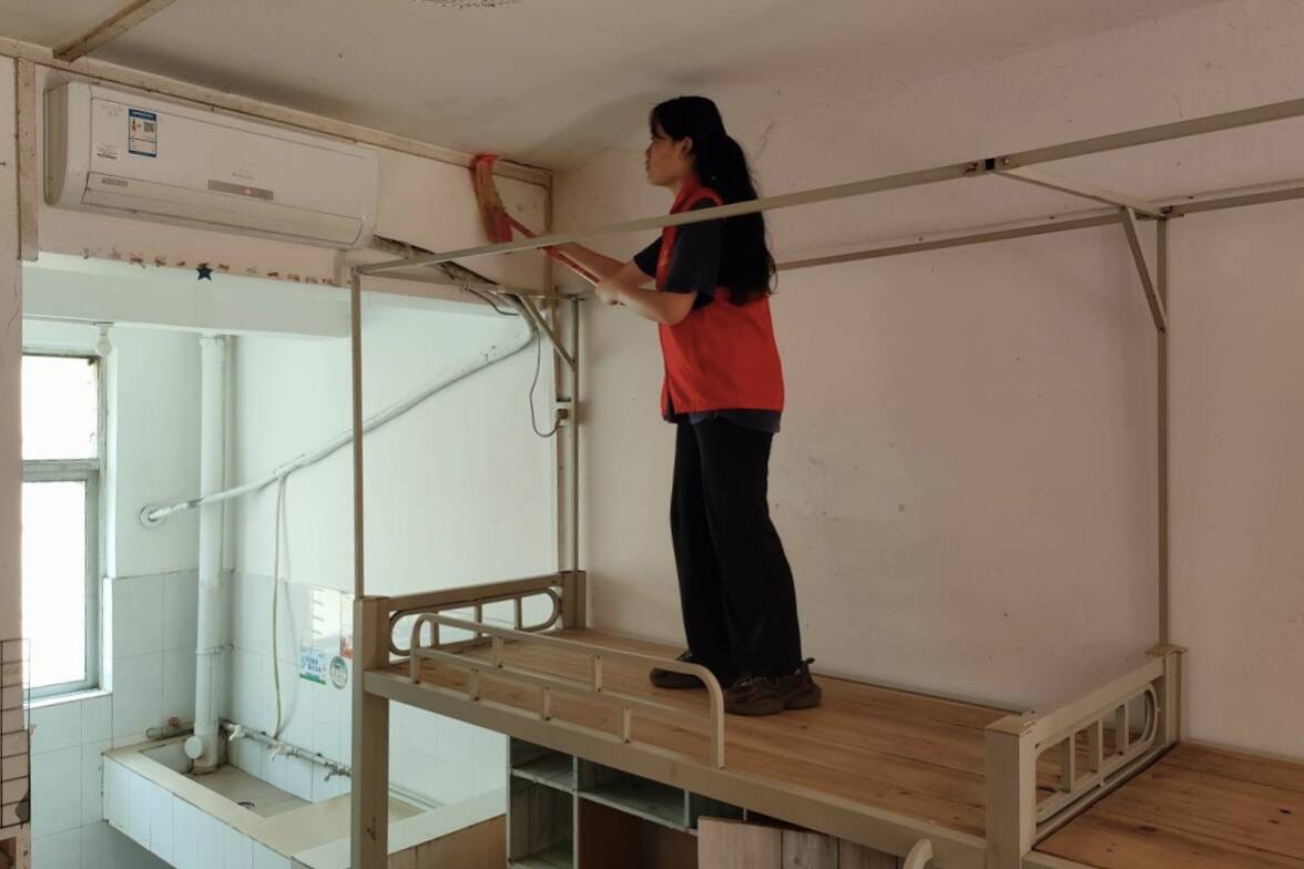 活动过程中,党员及积极分子分成若干小组,携带清洁工具,对各新生宿舍进行清洁。大家分工明确,配合默契,对门窗、地面,床铺、阳台等地方进行清理,并对基本设施进行检查、登记。大家齐心协力,不怕脏、不怕累,用实际行动为新生送上温暖。在党员及积极分子的共同努力下,宿舍环境焕然一新。