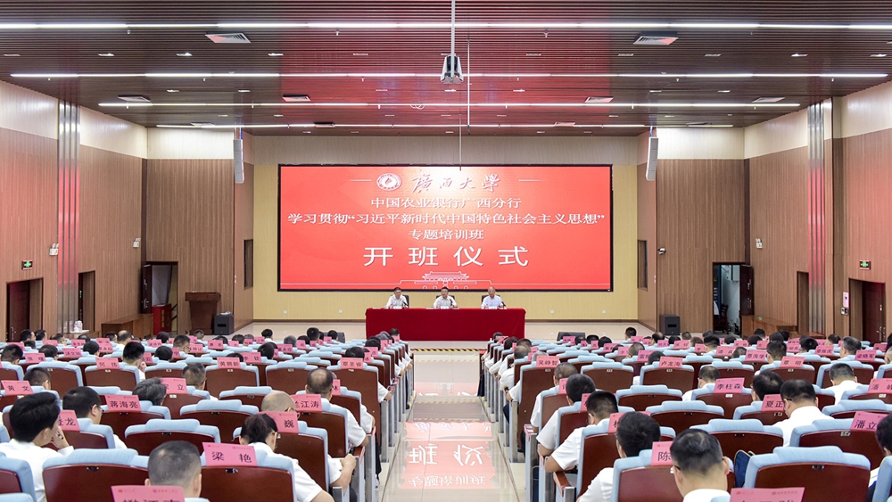 6月9日上午,由中国农业银行广西分行主办、我院承办的中国农业银行广西分行学习贯彻习近平新时代中国特色社会主义思想专题培训班(第二期)在我校举行开班仪式。中国农业银行广西分行党委书记、行长张清,广西大学副校长冯家勋出席开班式并讲话。