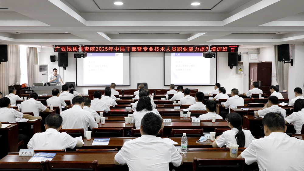 本次培训班由广西壮族自治区地质调查院主办,广西大学继续教育学院承办,为期3天,广西地质调查院领导班子成员、全院70余名中层干部及专业技术骨干参加培训。