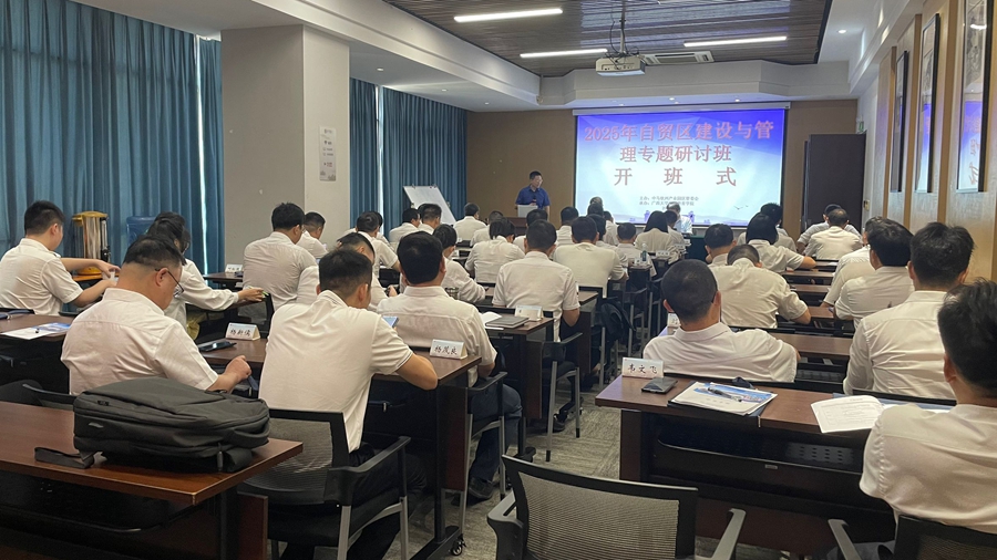 7月28日,2025年自贸区建设与管理专题研讨班在我校开班。中马钦州产业园区组织人事局副局长、协理局长公维新,广西大学继续教育学院副院长邓珍琪出席开班式并讲话。
