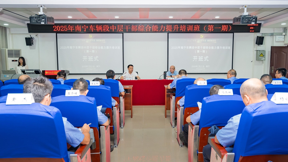 7月21日,2025年南宁车辆段中层干部综合能力提升培训班(第一期)在我校开班。南宁车辆段党委书记苏进,广西大学继续教育学院院长闭富春出席开班式并讲话。