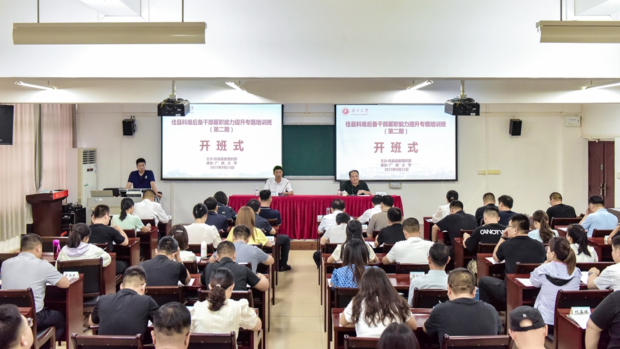 9月15日,佳县科级后备干部履职能力提升专题培训班(第二期)在我校开班,中共陕西省榆林市佳县县委组织部常务副部长高建峰出席开班式并讲话,广西大学继续教育学院干部培训中心主任黎耀凡出席开班式并致辞。
